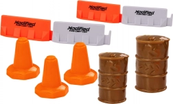 - 2 beczki, 8 pachołków drogowych, 4 bariery drogowe (pomarańczowo-białe)