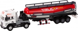 Ta ciężarówka z cysterną wiernie odwzorowuje prawdziwy ciągnik siodłowy z naczepą. Biała kabina i czerwona cysterna przyciągają wzrok, a światła i realistyczne dźwięki (uruchamianie silnika, cofanie) dodają autentyczności. Naczepę można łatwo odłączyć, dzięki czemu dzieci mogą bawić się osobno ciągnikiem i cysterną.