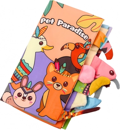 Kolorowy i dotykowy materiał sprawia, że broszurka jest nie tylko atrakcyjna wizualnie, ale także zachęca do częstego sięgania i odkrywania. Każde zwierzątko jest podpisane po angielsku, co wprowadza dziecko w świat słów, a także rozwija jego słownictwo i umiejętności językowe od najwcześniejszych lat.