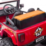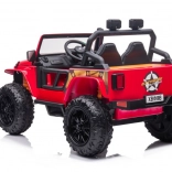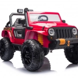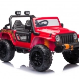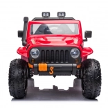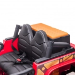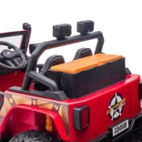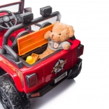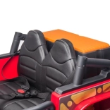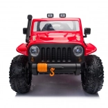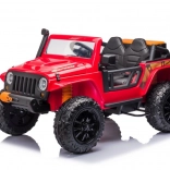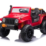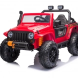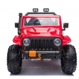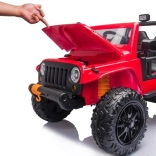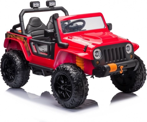 Czerwony samochód elektryczny dla dzieci inspirowany jest terenowym pojazdem off-road. Dzięki dużym kołom i zwiększonemu prześwitowi radzi sobie z nierówną nawierzchnią i zapewnia zabawę w ogrodzie oraz na placu zabaw. Otwarta kabina, kierownica i światła wspierają realistyczną zabawę i rozwój motoryki.