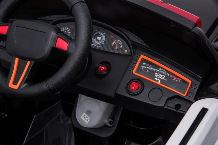 Kierownica, czytelna deska rozdzielcza i ergonomiczne siedzisko sprawiają, że mali kierowcy czują się jak w prawdziwym aucie i mają wszystko pod kontrolą.