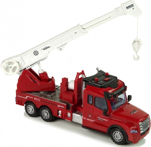 Dominującym elementem modelu jest wysuwany dźwig o długości do 34 cm + 10 cm dodatkowego wysuwu ze spuszczanym hakiem na lince. Podczas jazdy zapalają się przednie i tylne światła, przy cofaniu rozbrzmiewa sygnał ostrzegawczy, a podczas skręcania aktywują się boczne kierunkowskazy. Wysokiej jakości materiały zapewniają trwałość i bezpieczeństwo, a opakowanie z okienkiem świetnie nadaje się na prezent.