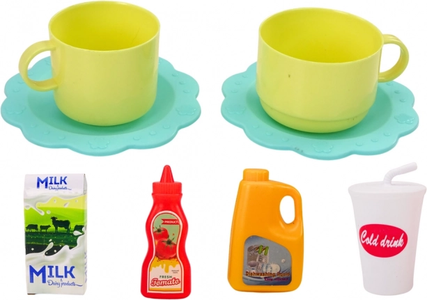 W zestawie znajduje się również owoce na rzep, które można wielokrotnie „kroić” dołączonym plastikowym nożem na deseczce. Dwie filiżanki z podstawkami wspierają serwowanie i wspólną zabawę. Bezpieczne materiały i przemyślane funkcje rozwijają motorykę małą, koordynację oko–ręka oraz kreatywność.