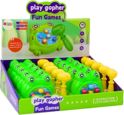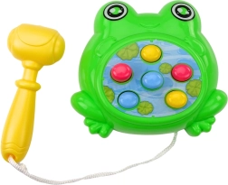 Minigra w kształcie zielonej żabki to mobilna wersja klasyki Whac‑A‑Mole: z otworów niespodziewanie wysuwają się cele, a zadaniem jest jak najszybciej trafić je dołączonym młoteczkiem. Dzięki kompaktowym wymiarom łatwo zabrać ją na wycieczkę, piknik czy wakacje.