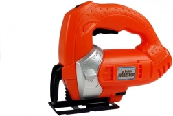 Po naciśnięciu przycisku porusza się „brzeszczot” i słychać dźwięk jak przy prawdziwym cięciu. Bezpieczna konstrukcja do dziecięcej zabawy w rzemieślnika.