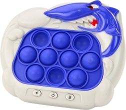 Pop-It Rekin Niebieski to idealny wybór dla dzieci i dorosłych szukających ciekawej i wciągającej formy zabawy. Gra jednocześnie pełni funkcję edukacyjną, wspierając rozwój kluczowych umiejętności. Konsola jest zasilana 3 bateriami 1,5 V AAA, które nie są dołączone do zestawu.