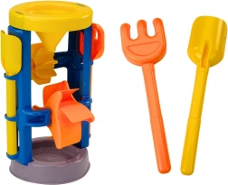 Duży zestaw do piasku z młynkiem oferuje kompletny zestaw do zabaw na świeżym powietrzu w piasku. Zawiera duży młynek o podwójnym zastosowaniu – sitko do przesiewania piasku oraz lejek do precyzyjnego dozowania. Dzięki temu zabawa jest bardziej efektywna i kreatywna.
