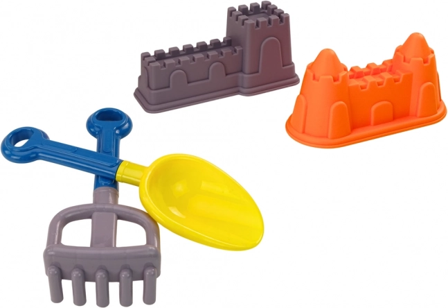 Oprócz młynka zestaw zawiera łopatkę, grabki oraz dwie foremki w kształcie zamku. Łopatka i grabki są idealne do kopania, przesiewania i formowania piasku, co pozwala tworzyć różne budowle i dzieła sztuki z piasku. Foremki w kształcie zamku dodają zabawie elementu fantazji i umożliwiają dzieciom budowanie własnych zamków z piasku oraz tworzenie własnego królestwa na nadmorskim brzegu lub w piaskownicy.