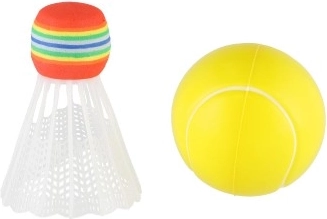 Zestaw zawiera piłkę i kolorowy koszyczek, dzięki czemu jest świetny do tenisa miękkiego lub badmintona.