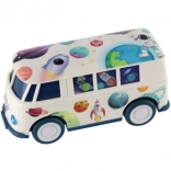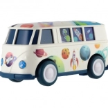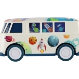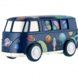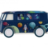Autobus został zaprojektowany z użyciem żywych kolorów i kosmicznych motywów, które przyciągną uwagę każdego dziecka.