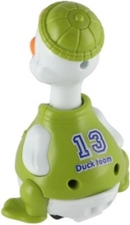 Prosty mechanizm napędu ciernego: naciśnij głowę kaczki, a pojedzie do przodu bez baterii. Świetna zabawa i rozwój motoryki.
