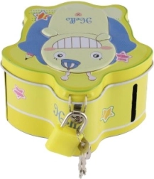 Skarbonka jest wyposażona w kłódkę z kluczykami, więc zebrane monety pozostaną bezpieczne nawet poza zasięgiem wzroku dorosłych.
