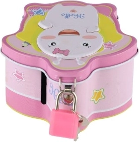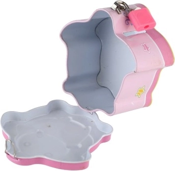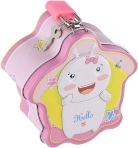 Urocza i wytrzymała metalowa skarbonka z kłódką w przyjemny, zabawowy sposób uczy dzieci gospodarowania pieniędzmi. Na górze ma szczelinę na monety, dzięki czemu oszczędności są bezpieczne. Kompaktowy rozmiar 10 × 6 cm zmieści się na każdym biurku lub półce, a dzięki 4 wersjom kolorystycznym dzieci szybko ją polubią. Dostarczana w woreczku.