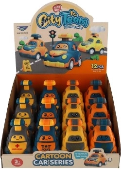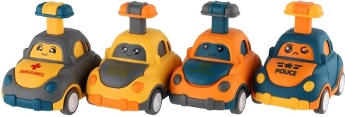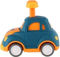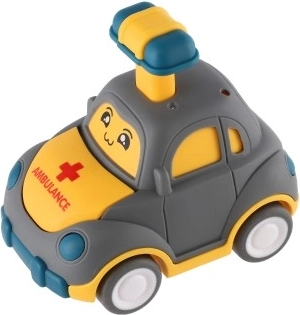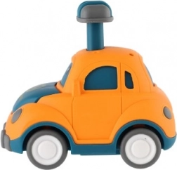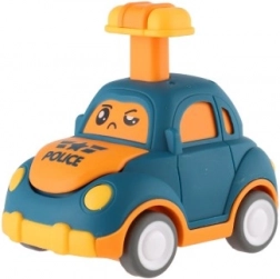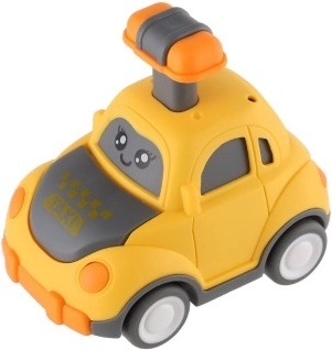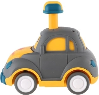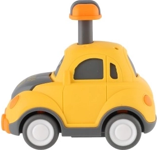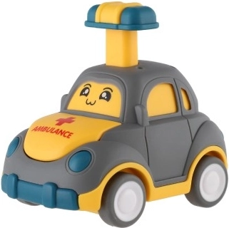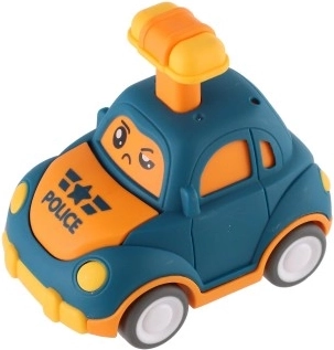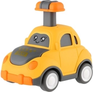 Uroczy plastikowy samochodzik z buźką ucieszy każdego małego kierowcę. Wystarczy nacisnąć dźwignię na dachu, a autko samo ruszy dzięki napędowi ciernemu. Kompaktowy rozmiar 9 cm idealnie pasuje do dziecięcej dłoni, bezpieczne wykonanie oraz cztery różne warianty (policja, karetka, taxi itp.) pobudzają wyobraźnię i motorykę. Odpowiednie dla dzieci od 3 lat.