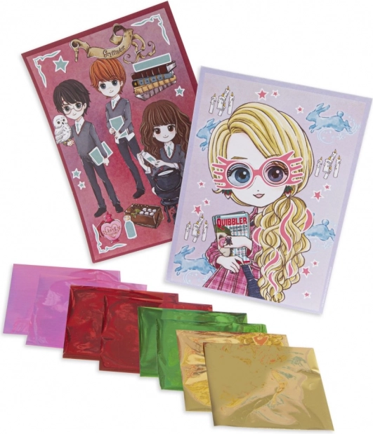 Ten zabawny i prosty zestaw kreatywny przenosi w Twoje ręce magię świata HARRY POTTER. Na dwóch tematycznych obrazkach z postaciami Harry’ego, Hermiony, Rona i Luny ukryte są powierzchnie samoprzylepne, które po odklejeniu ozdobisz dołączonymi foliami. W kilka minut stworzysz piękne, metalicznie błyszczące obrazki, idealne do dekoracji lub jako oryginalny prezent.
