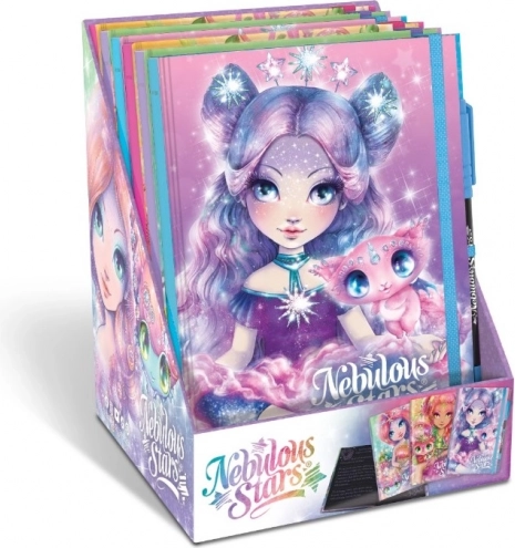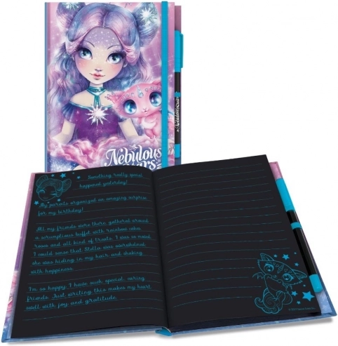 Pamiętnik Nebulous Stars z 112 czarnymi stronami i długopisem żelowym. Wymiary 20,1 × 15,2 cm. Trzy wersje kolorystyczne do oryginalnego pisania i rysowania.