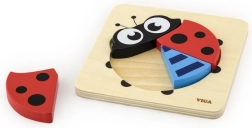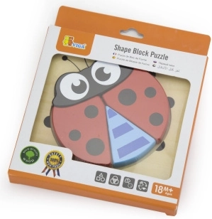 Ta prosta i wciągająca drewniana układanka to idealne pierwsze puzzle dla dzieci. Dzięki 4 solidnym elementom, które dokładnie pasują do wyciętego kształtu na drewnianej podstawie, dziecko szybko zrozumie zasadę układania i z radością stworzy obrazek uroczej biedronki. Zabawa wspiera koncentrację, cierpliwość i pierwsze logiczne myślenie.