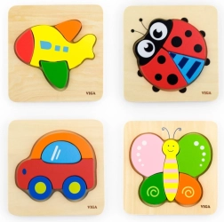 Produkt wykonany jest z wysokiej jakości drewna i malowany bezpiecznymi, nietoksycznymi farbami. Gładkie krawędzie i trwałe wykonanie zapewniają bezpieczne użytkowanie w domu i w przedszkolu. Puzzle należą do kolekcji – możesz rozszerzać dziecięcy zestaw o kolejne motywy i systematycznie rozwijać umiejętności.