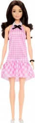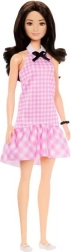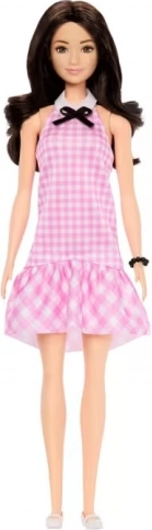 Lalka Barbie Fashionistas oferuje nowoczesne ujęcie retro stylu inspirowanego lookiem Quick Curl z 1973 roku. Elegancką różową sukienkę w kratkę gingham uzupełniają czarna kokarda przy dekolcie, białe obuwie i czarna bransoletka – razem tworzą szykowny strój do codziennej i uroczystej zabawy.