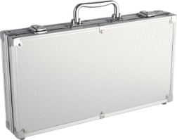 Walizka została zaprojektowana z myślą o łatwym transporcie i uporządkowanym przechowywaniu wszystkich elementów zestawu. Jej solidna konstrukcja zapewnia trwałość i stylowy wygląd.