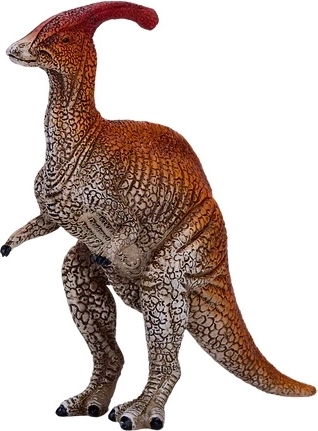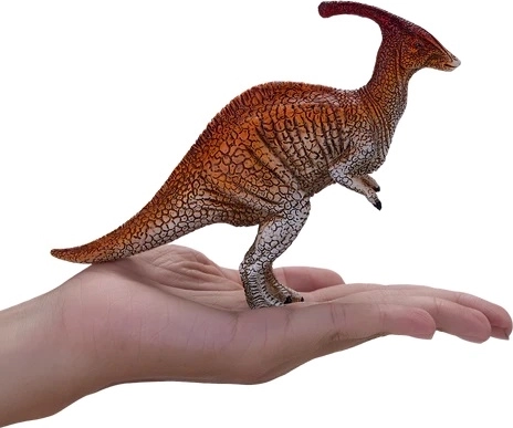 Figurka wiernie oddaje realistyczny wygląd Parasaurolophusa, zachwycając starannie dobranym brązowo-czerwonym ubarwieniem.