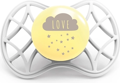 Smoczek został starannie zaprojektowany przez ekspertów i dostosowany do naturalnych potrzeb dzieci. Dzięki innowacyjnemu kształtowi i materiałowi jego użytkowanie wspomaga zdrowie dziecka. Smoczek oferuje maksymalną oddychalność, co umożliwia lepsze oddychanie i zapobiega gromadzeniu się śliny wokół ust, co może podrażniać skórę.