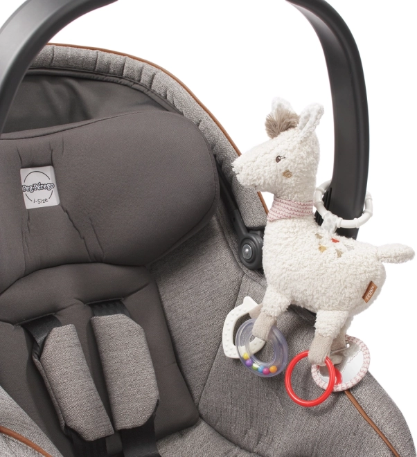 To przytulna pluszowa zabawka i zarazem opiekun, który szybko stanie się dziecięcym przyjacielem. Na nogach ma ciekawe elementy, wspierające umiejętności motoryczne i dające dużo radości. Niezwykły kształt i różne materiały zapewniają świetne doznania dotykowe i sensoryczne. Zabawka lama to najlepsza rozrywka w podróży. Szybko mocuje się do wózków i fotelików samochodowych.