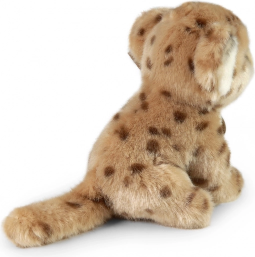 Ten siedzący pluszowy gepard ucieszy małych i dużych miłośników zwierząt. Dzięki ręcznemu wykonaniu i dopracowanemu wyglądowi prezentuje się realistycznie, a jednocześnie jest przyjemnie miękki i gotowy na codzienne przytulanie. Wypełnienie z recyklowanych butelek PET jest całkowicie bezpieczne i w dotyku nie do odróżnienia od standardowego.
