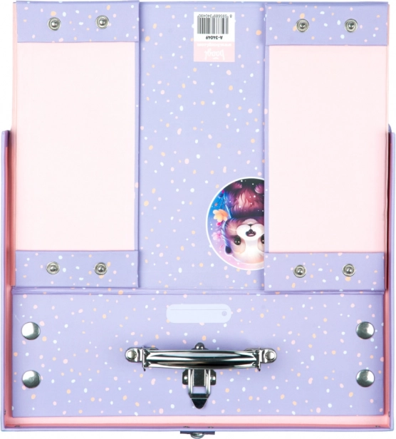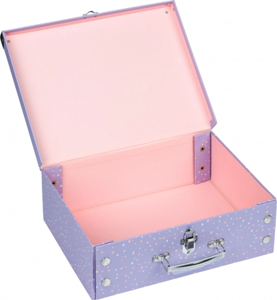Kufer łączy zabawny design z praktycznym zastosowaniem. Metalowy uchwyt i zabezpieczone rogi zapewniają trwałość i solidność.