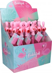 Ciesz się zabawą z oryginalnym bublifukiem 2w1 w kształcie flaminga, który nie tylko tworzy wspaniałe bańki, ale także wydaje dźwięki dzięki gwizdkowi.