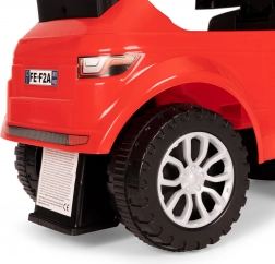 Między kołami, na przedniej i tylnej osi, znajdują się specjalne „nóżki”, które zabezpieczają jeździk. Dzięki nim pojazd nie przewróci się do przodu ani do tyłu, nawet podczas intensywnej zabawy.
