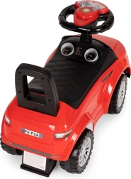 Na kierownicy znajdują się 3 przyciski odpowiedzialne za odtwarzanie dźwięków. Jeździk ma zaprogramowane 3 melodie oraz dźwięk klaksonu. Dzięki tej funkcji zabawa będzie jeszcze atrakcyjniejsza.