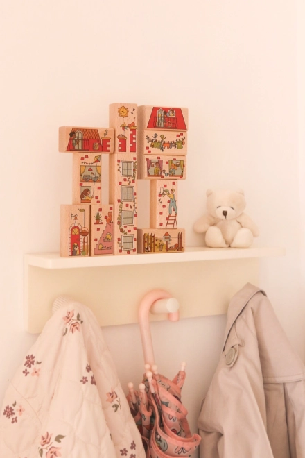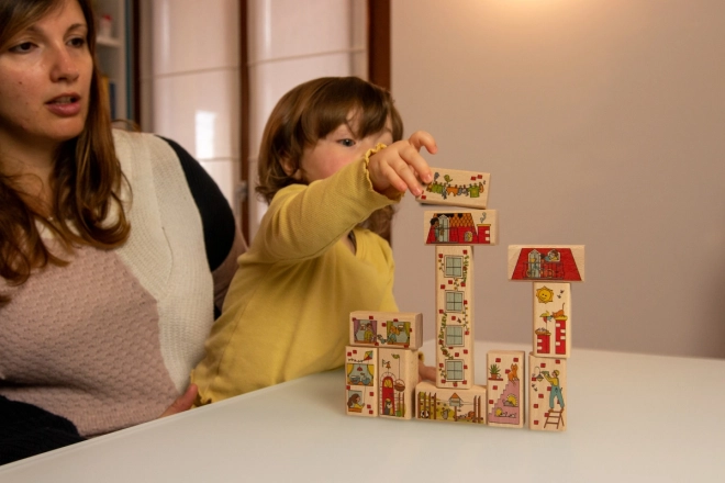 Każdy klocek zdobią kolorowe ilustracje, które pobudzają wyobraźnię i niosą wartość edukacyjną.