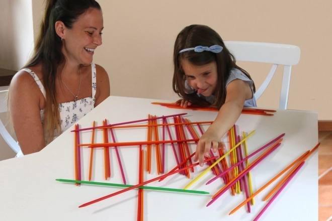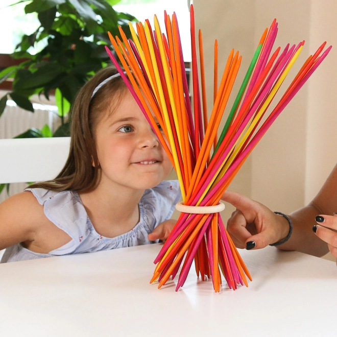 Szanghajskie słońce to tradycyjne mikado przemienione w element dekoracyjny. Kolorowe drewniane patyczki można ułożyć w pierścień i wykorzystać jako ozdobę wnętrza. Gra przeznaczona jest dla dwóch i więcej graczy od 5 lat, wspiera koncentrację i zręczność.