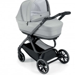 Siedzisko spacerowe jest w pełni regulowane aż do pozycji leżącej, wyposażone w miękkie wyściełanie, obfitą budkę oraz pasy bezpieczeństwa. W niepogodzie docenisz osłonę na nóżki z wysokim zacienieniem, którą szybko odepniesz na zamek. Zestaw uzupełniają torba do przewijania i folia przeciwdeszczowa; stelaż kupuje się osobno.