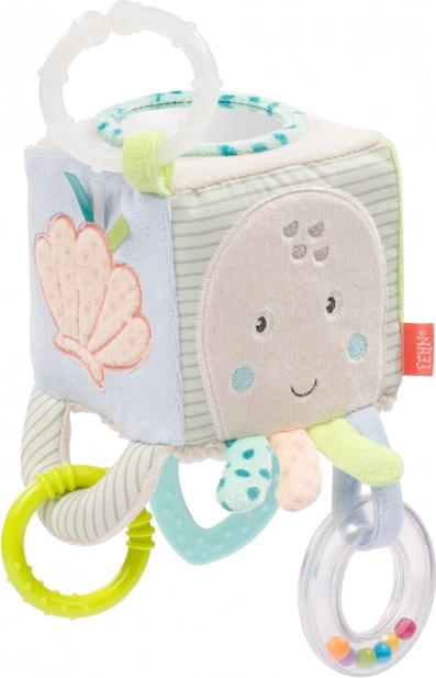 Dzięki ekscytującej edukacyjnej kostce do zabawy z kolekcji Dzieci Morza dziecko będzie poprzez zabawę odkrywać nowe rzeczy. Grzechotka, kolorowy pierścień do chwytania, miękki gryzak, szeleszczący papier, lusterko i dzwoneczek oferują różne możliwości zabawy i wspierają koncentrację dziecka oraz koordynację ręka-oko.
