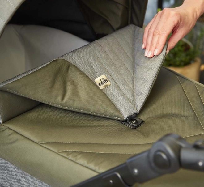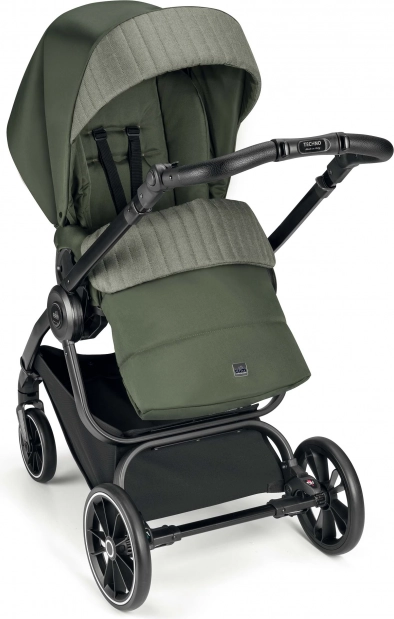 Latem docenisz szeroką budkę z wentylacją i moskitierą, a w chłodniejsze dni przestronną osłonę na nóżki. W skład kompletu wchodzi także plecak do przewijania oraz praktyczne wyposażenie do codziennego użytku.