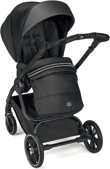 Siedzisko spacerowe można w pełni rozłożyć aż na płasko, oferuje miękkie wyściełanie, obfitą budkę i wyściełane pasy bezpieczeństwa, co gwarantuje bezpieczną i wygodną jazdę. W razie niepogody docenisz osłonkę na nóżki z wysokim zacienieniem, którą łatwo odepniesz za pomocą zamków. W zestawie znajduje się także torba do przewijania w dopasowanym wzornictwie oraz folia przeciwdeszczowa. Stelaż nie jest częścią opakowania.