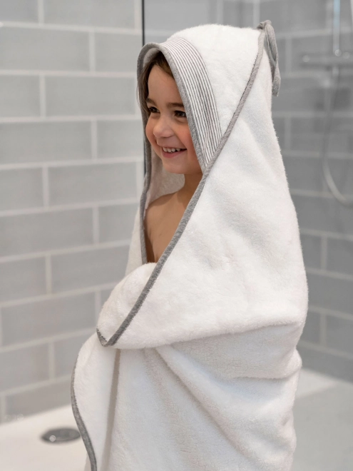 Ręcznik Doomoo Dry&Play jest na tyle duży, że po kąpieli mogą się w niego wtulić także starsze dzieci. Wykonany jest z miękkiej organicznej bawełny i posiada certyfikat OEKO-Tex.