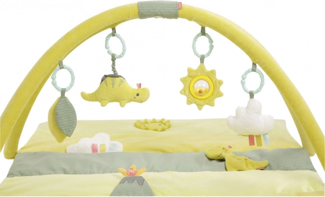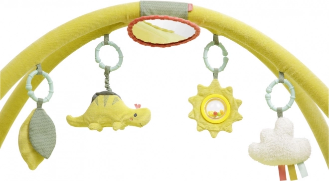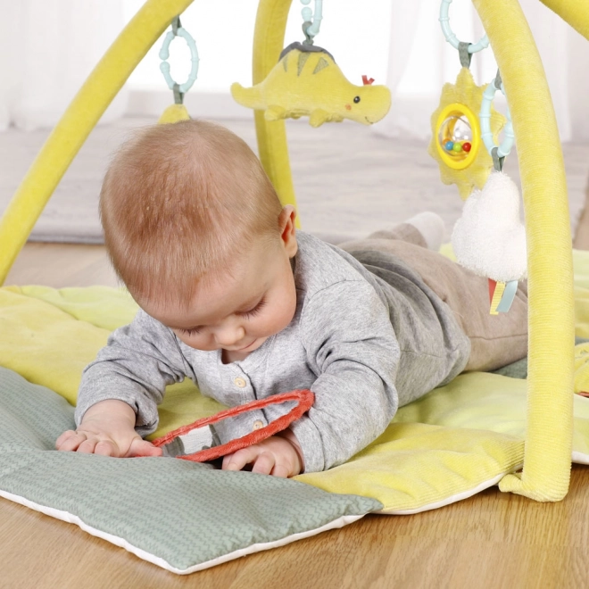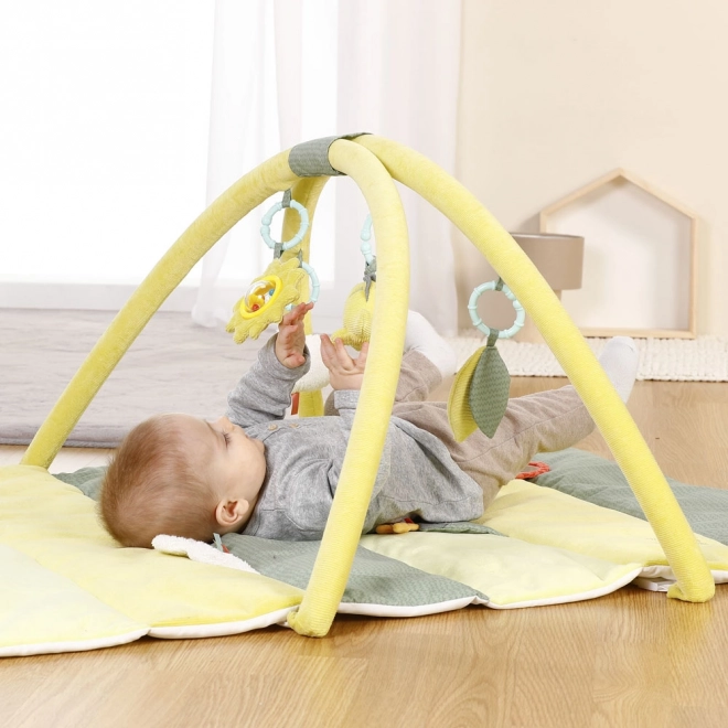 Miękka mata edukacyjna wspiera naturalną ciekawość dzieci już od najwcześniejszego wieku. Pozwól dzieciom bezpiecznie odkrywać świat wokół nich. Mata wykonana jest z wysokiej jakości, miękkiego materiału i izoluje chłód od podłogi. W zestawie znajdują się: grzechotka, piszczałka, szeleszczący papier, lusterko, dzwoneczek oraz moduł wibracyjny. Wszystkie te elementy w atrakcyjny sposób stymulują zmysły dziecka oraz rozwijają wyobraźnię, zmysły i małą motorykę. Wiszący pałąk z zabawkami jest na odpowiedniej wysokości, aby dziecko mogło do niego dosięgnąć, nawet leżąc na plecach. Zawieszone pluszowe zabawki są łatwe do chwytania także przez małe rączki dziecka.