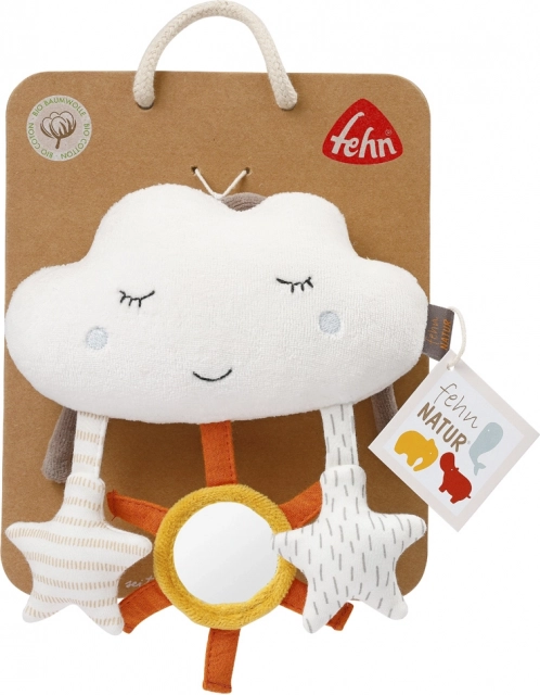 Miękka chmurka wykonana jest w 100% z organicznej bawełny i w mgnieniu oka podbije serce dziecka. Zawiera pluszowe gwiazdki z szeleszczącym papierem oraz pluszowe słoneczko z grzechotką. Zawieszki pomagają rozwijać chwyt, dotyk, małą motorykę, wyobraźnię i koordynację. Dzięki praktycznej pętli chmurkę można łatwo przymocować do łóżeczka, wózka lub fotelika samochodowego.