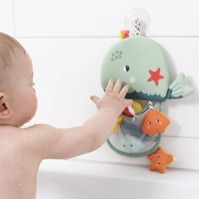 Praktyczny organizer w kształcie uroczej wielorybki pozwala utrzymać porządek w łazience i mieć zabawki do kąpieli zawsze pod ręką. Dzięki przyssawce wielorybę można przymocować do ściany, a mniejsze zabawki umieścić w jej siateczce, gdzie dzięki przewiewności również wyschną. Organizer jest wyposażony w szeleszczący papier i trzy pluszowe zabawki z pętelką.