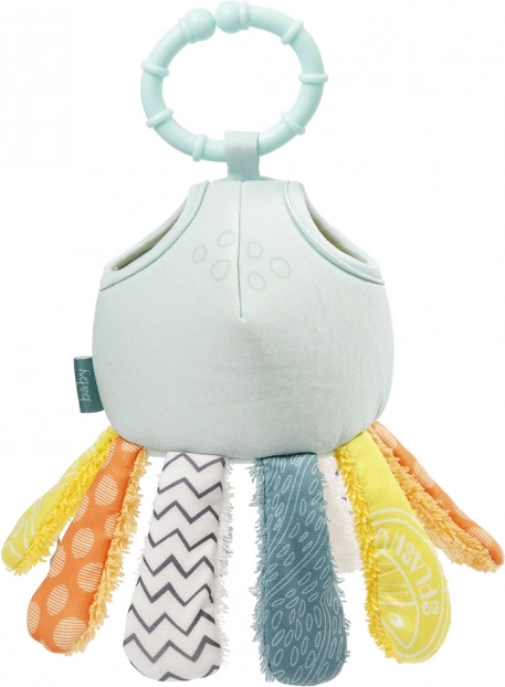 Z ośmiornicą każda kąpiel będzie zabawą. Wystarczy zanurzyć uroczą pluszową zabawkę w wodzie i ponownie pociągnąć za kółko. Woda przepłynie wtedy przez otwory w dnie ośmiornicy i stworzy mały wodospad. Dodatkowo ośmiornica ma w mackach szeleszczący papier, który wspiera rozwój zmysłów i motoryki dziecka.