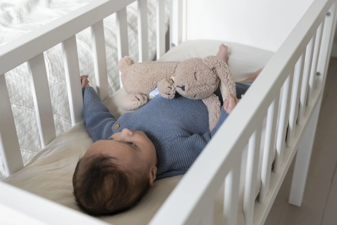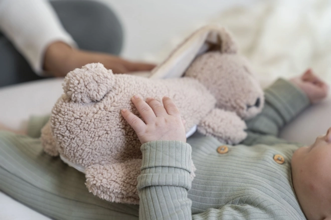 Delikatny króliczek daje poczucie bezpieczeństwa w łóżeczku i pomaga dziecku szybciej zasnąć.