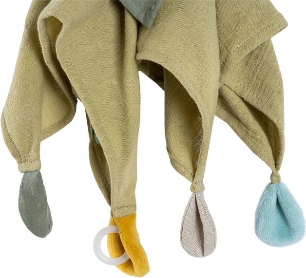 Ta przytulanka z motywem misia FehnNatur przynosi Twojemu maluszkowi spokój i radość. Wykonana z delikatnych materiałów, które stymulują zmysły i wspierają rozwój dotykowy, a pierścień na smoczek zapewnia, że smoczek się nie zgubi.