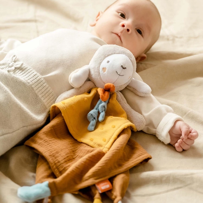 Przytulanka owieczka FehnNatur to idealny towarzysz spokojnego zasypiania i radosnej zabawy. Ten uroczy miś-przytulanka wykonany jest z przyjemnych materiałów, takich jak frotté, muślin, dżersej i welur, co gwarantuje komfort i bezpieczeństwo dla Twojego dziecka. Dzięki swojej delikatności i praktyczności stanie się niezastąpiony nie tylko przy zasypianiu, lecz także podczas codziennych przygód.