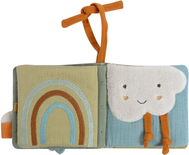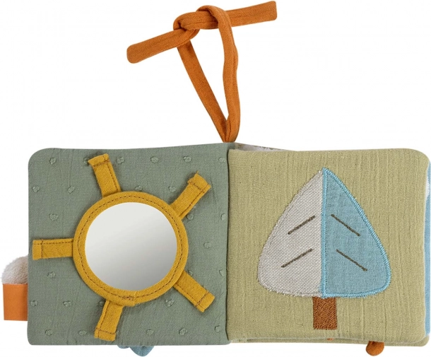Owca, słońce, drzewo, tęcza, chmura, księżyc czy dom – to wszystko czeka Twoje dziecko w książeczce z kolekcji FehnNATUR 3.0. Trzaski, piszczenie, chrobotanie, szeleści papier oraz bezpieczne lusterko są źródłem zabawy, a przy tym w zabawny sposób uczą i rozwijają dotyk, chwyt, wzrok i słuch. Zintegrowane elementy do zabawy – szeleszczący papier, lusterko i piszczałka – w lekki sposób wspierają zmysł dotyku i chwytu, koordynację ręka–oko oraz samoświadomość. Różne faktury poszczególnych stron będą bawić dziecko podczas przewracania kartek i odkrywania. Idealna do zabawy w domu i w podróży!