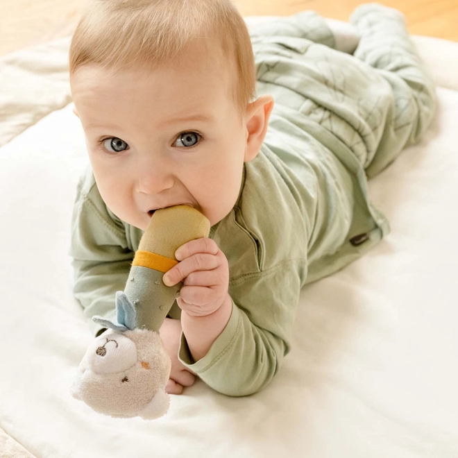 Dziecięca grzechotka jest idealna do chwytania i przytulania i zawsze może towarzyszyć Twojemu maluszkowi – w łóżeczku, foteliku samochodowym lub w wózku. Wspiera zmysł dotyku, słuch oraz motorykę dziecka. Przyjemne dźwięki grzechotki przyciągają uwagę maluszka i potrafią go rozproszyć nawet wtedy, gdy coś tak go zasmuciło, że rozpłakał się.
