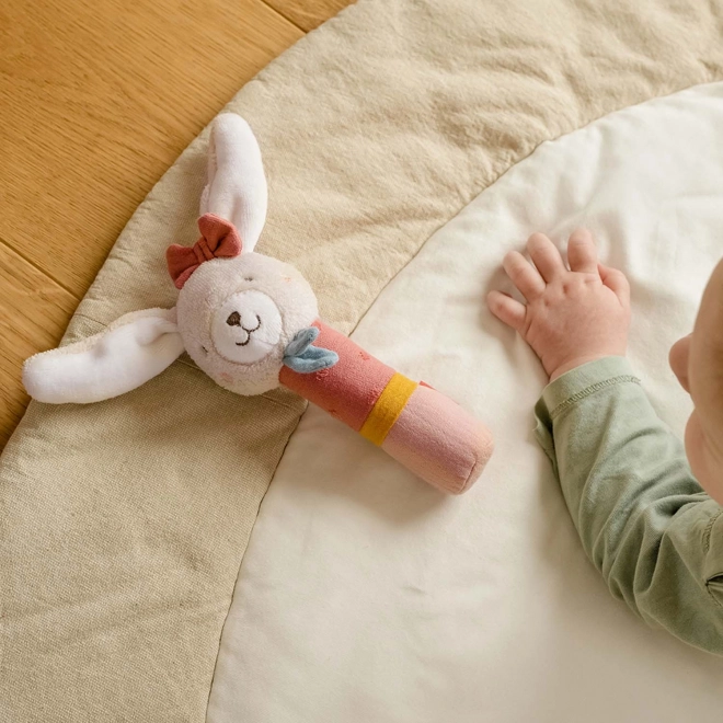 Dziecięca grzechotka jest idealna do chwytania i przytulania i zawsze towarzyszy Twojemu maluszkowi – w łóżeczku, foteliku samochodowym lub w wózku. Wspiera zmysł dotyku, słuch oraz motorykę dziecka. Przyjemne dźwięki grzechotki przyciągają uwagę maluszka i potrafią go rozproszyć nawet wtedy, gdy coś tak go zasmuciło, że się rozpłakał.