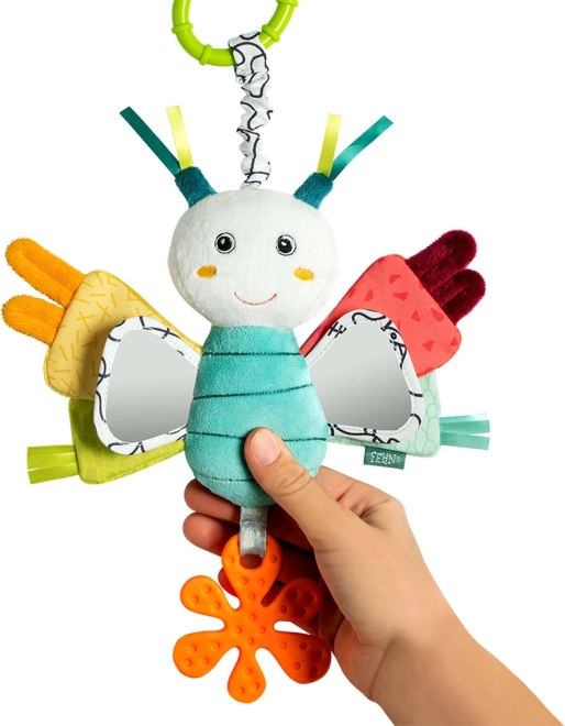Zabawkę można za pomocą praktycznego C‑kółka przymocować do wózka, fotelika samochodowego dla dziecka lub łóżeczka.